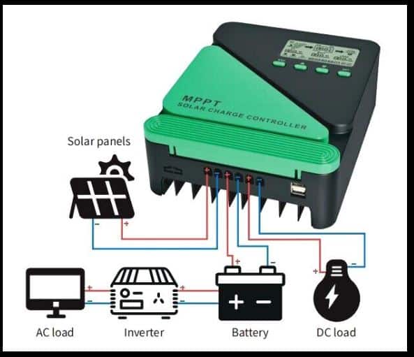 A solar charge controller regulates the flow of electricity from your solar panels to your batteries.
